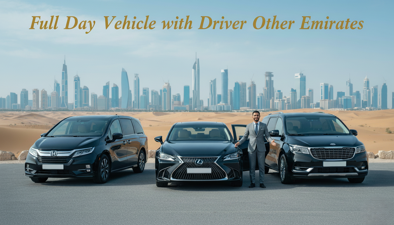 Experience the UAE in ultimate comfort and style with JTH Tourism’s full-day private vehicle and chauffeur service. Whether you’re planning a day trip to Abu Dhabi, Sharjah, Ras Al Khaimah, or any other Emirates, our fleet of luxurious vehicles and professional drivers are at your service.